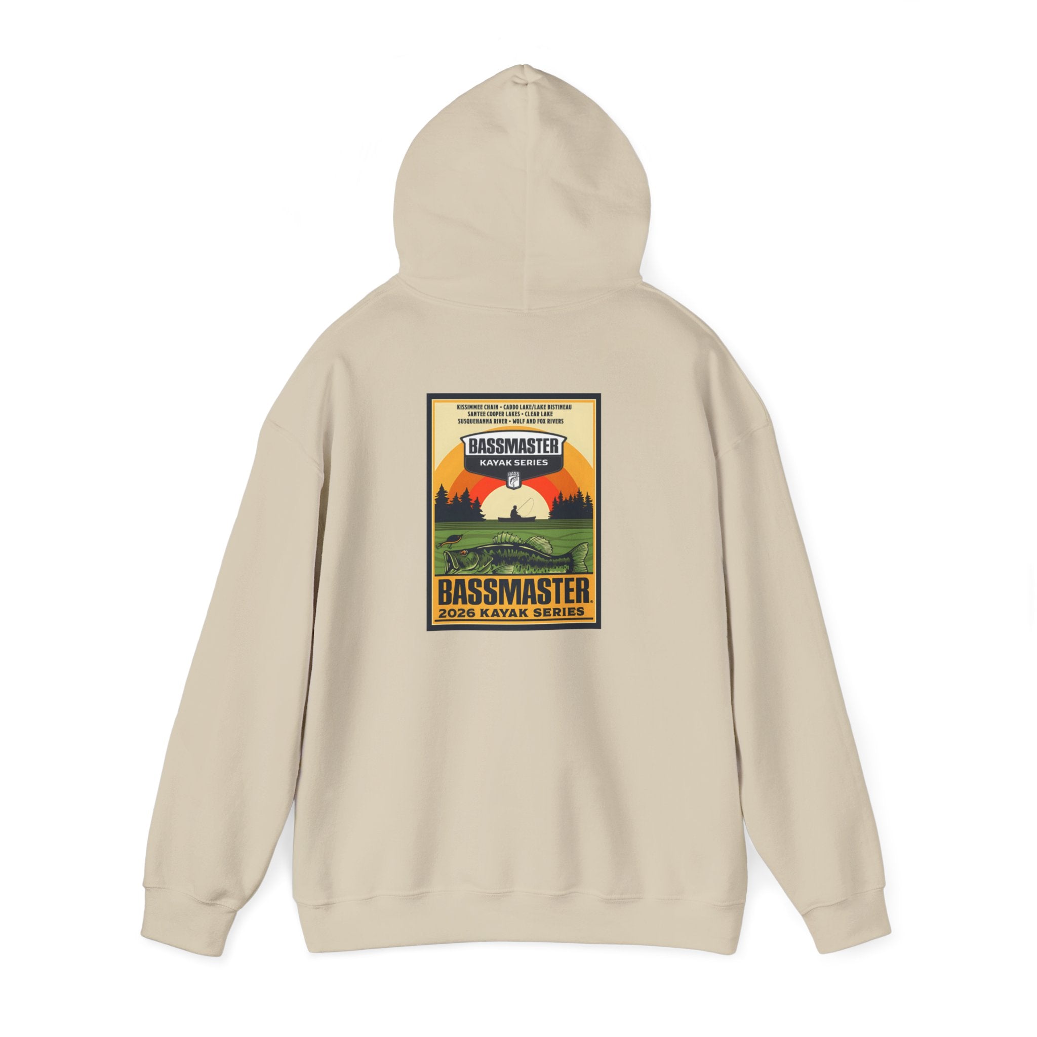 The Kayak Til Dusk Hoodie captures the focused side of the sport with a sunset-inspired design and full season lineup—made for those who let their fishing do the talking.