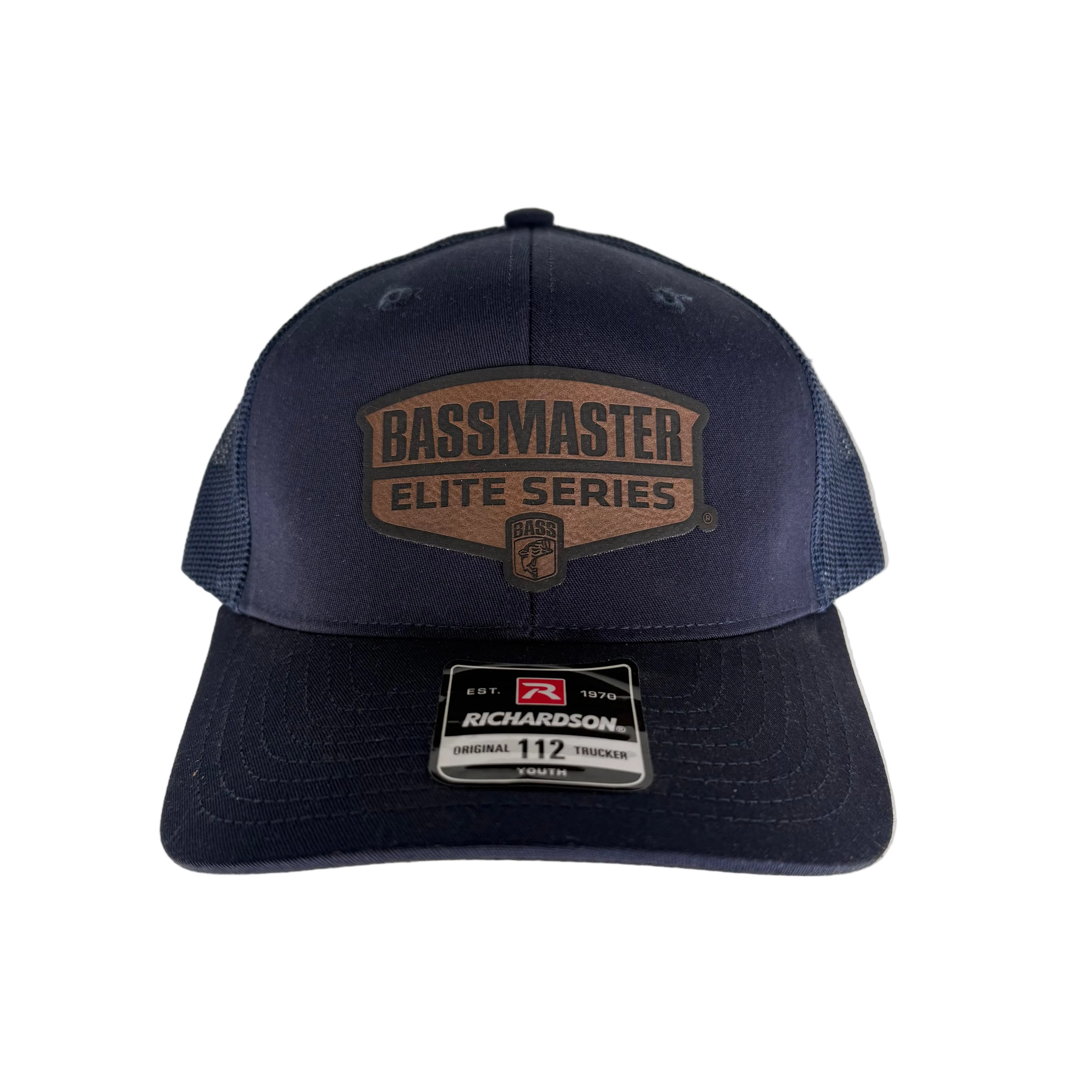 BASSMASTER ELITE SERIES YOUTH Leather Logo Richardson 112 Trucker Snapback Navy